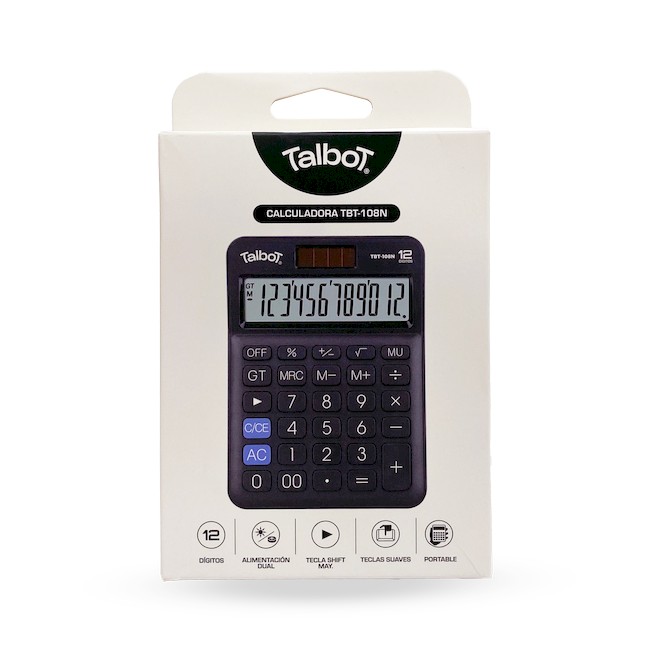 CALCULADORA ESCRITORIO TALBOT 12 DIGITOS NEGRA DC-108N